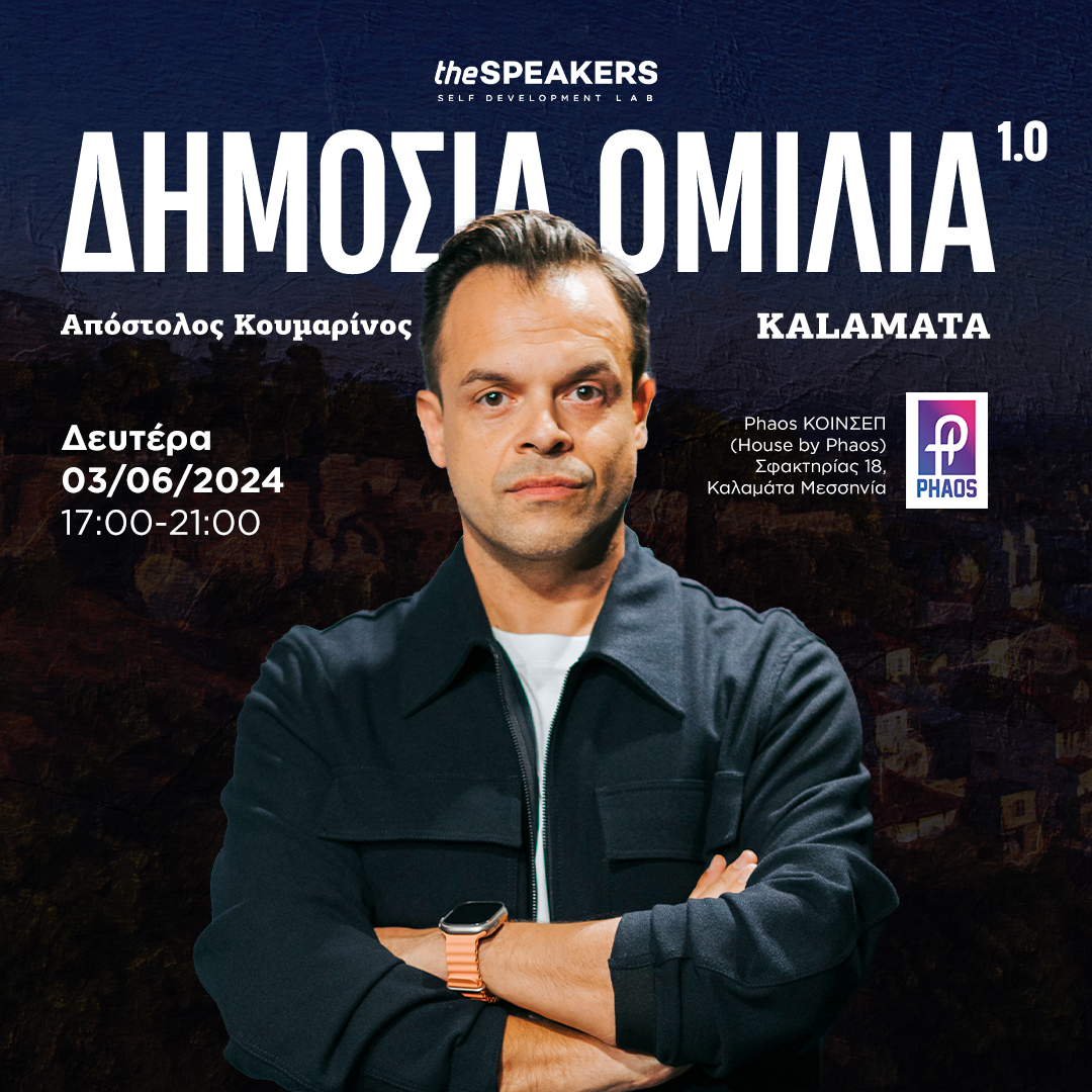 Ο Απόστολος Κουμαρίνος, Ιδρυτής των theSPEAKERS και Πρωταθλητής Δημόσιας Ομιλίας, μεταξύ άλλων θα μιλήσει για: