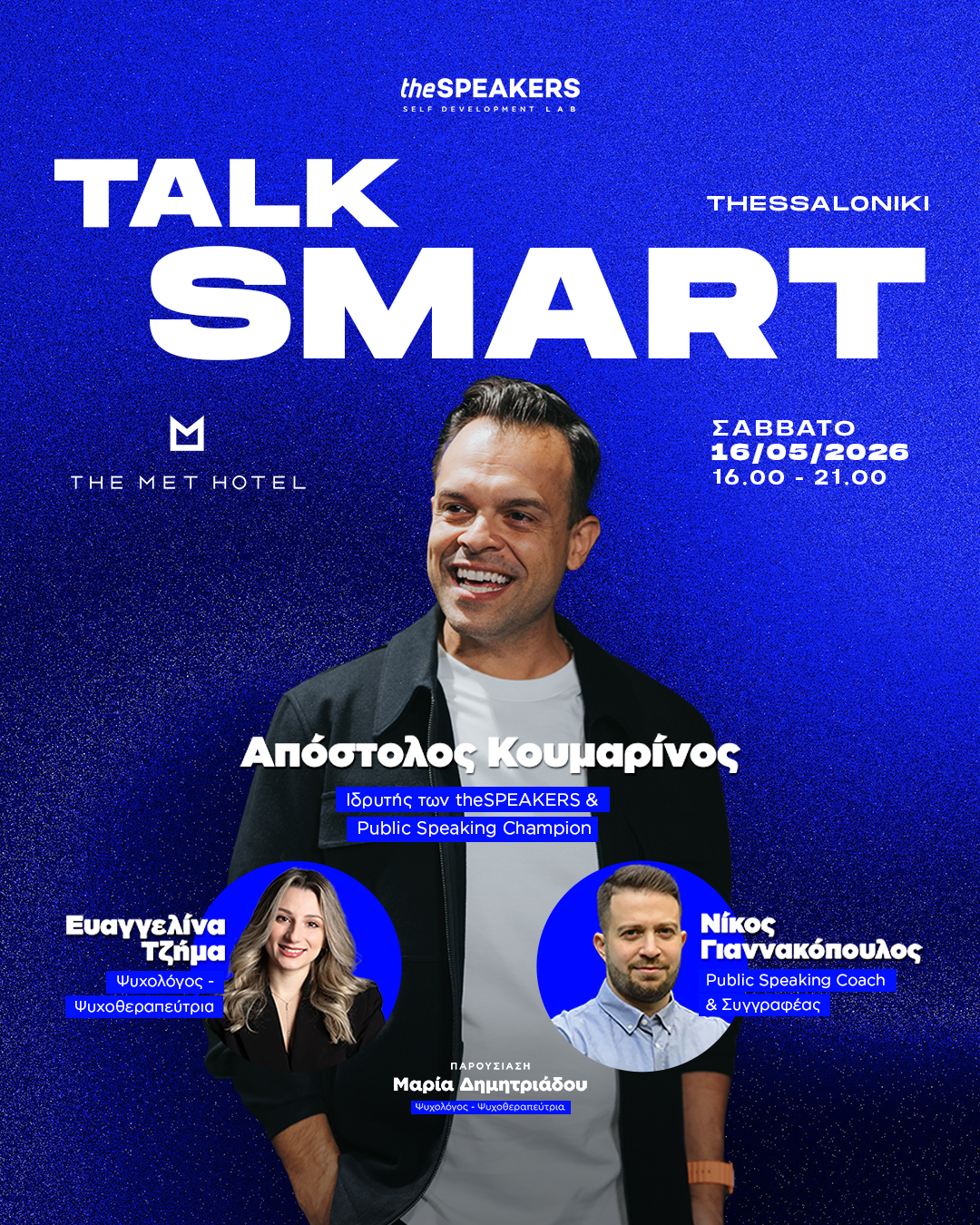 Το Talk Smart: από την Αυτοπεποίθηση στην Επιρροή είναι ένα δυναμικό, βιωματικό workshop που σχεδιάστηκε για να σου δώσει τα εργαλεία να εξελίξεις ουσιαστικά τις δεξιότητές σου στην επικοινωνία και τη δημόσια ομιλία.